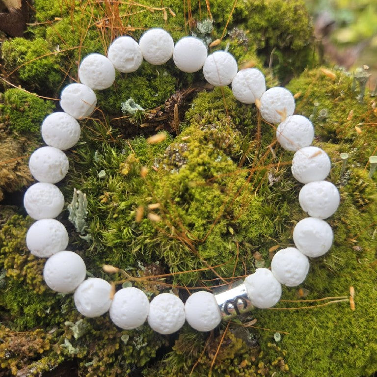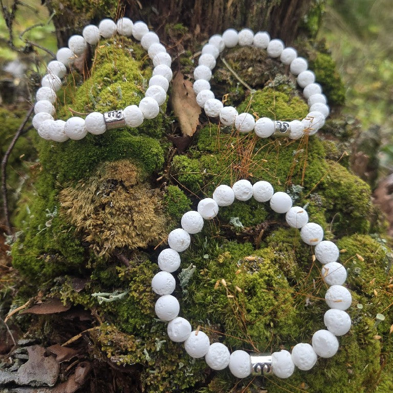 Disse elegante armbåndene er håndlaget av hvite lava-steinperler, kjent for sin styrke og balanserende energi, samt kvalitetsmetall med inngravert stjernetegn: Skorpion, Vær og Løve. Hver perle representerer planetenes kraft og astrologiens mystikk – perfekt for deg som ønsker å bære ditt stjernetegn og tilhørende energi med stolthet.