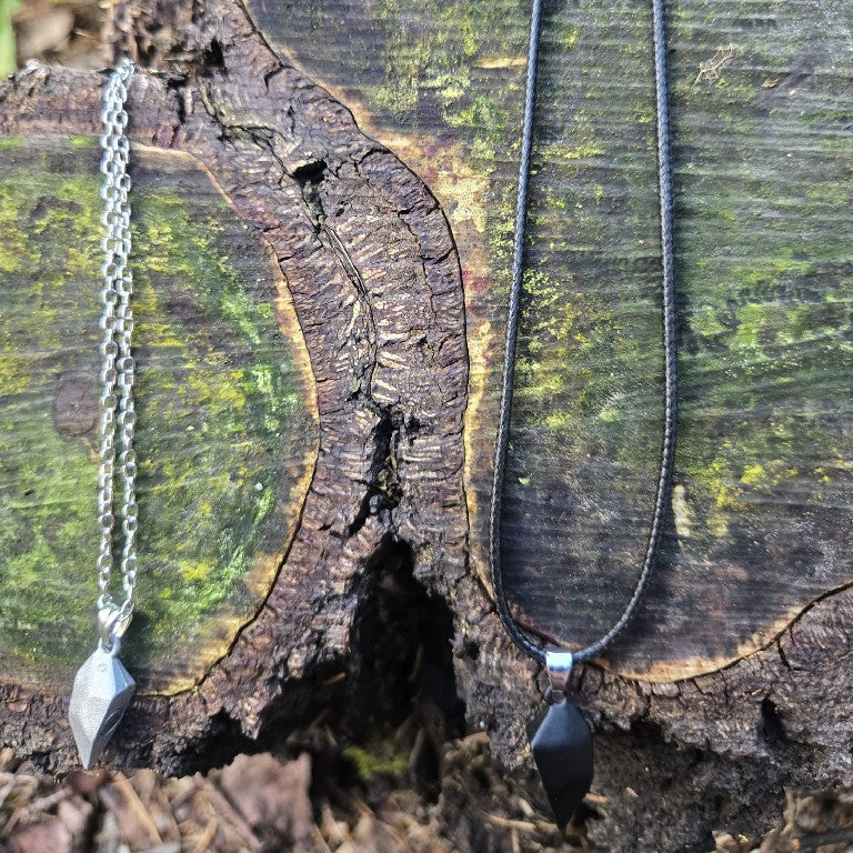 Materiale: Metallanheng med magnet, sort snor, sølvfarget metallkjede