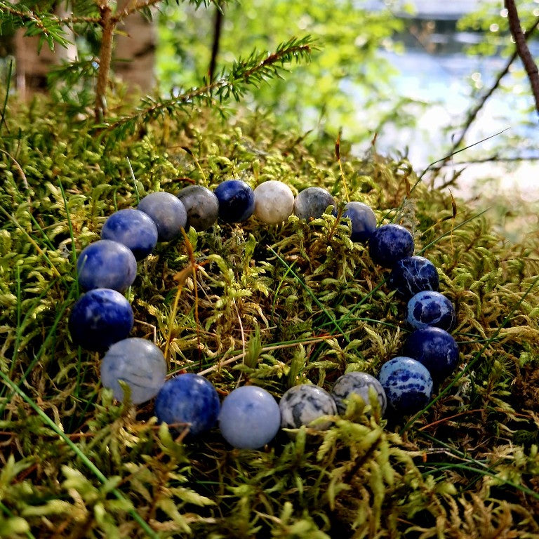 Naturstein Armbånd - Blå Sodalitt og Grå Jaspis