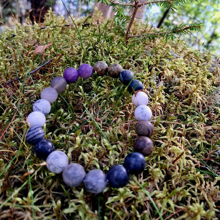 Armbåndet kombinerer flere naturlige steintyper for å reflektere Plutos sammensatte og gåtefulle natur – perfekt for dem som ønsker et unikt og meningsfullt smykke med astronomisk inspirasjon.