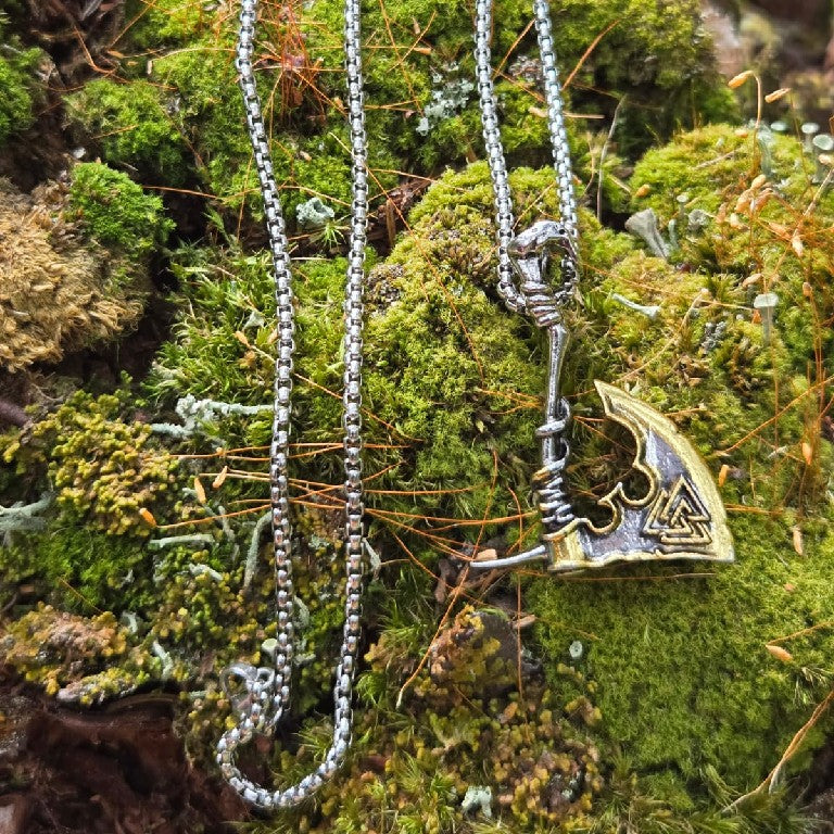 Unikt vikingeøks-smykke i rustfritt stål med gulldetaljer!