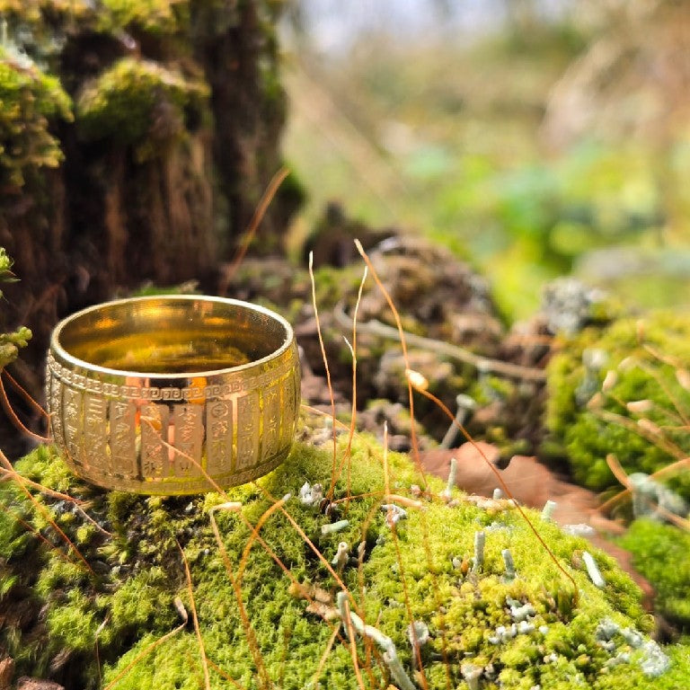 Tilgjengelig i størrelsene 9 og 10, passer både menn og kvinner. Ringen tåler daglig bruk, mister ikke glansen og holder seg like fin år etter år. Gjør et statement med denne asiatiske designringen!